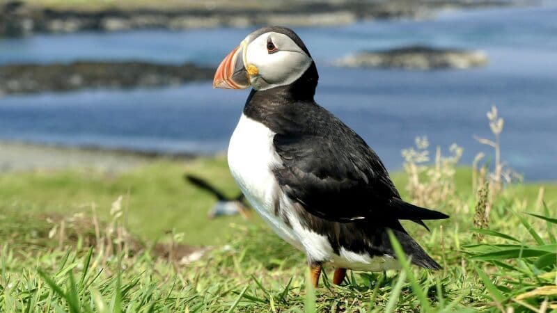Atlantic puffins are carnivorous birds and their diet almost entirely consists out of fish. Besides this, they occasionally consume various crustaceans and invertebrates such as shrimp, mollusks and polychaetas.